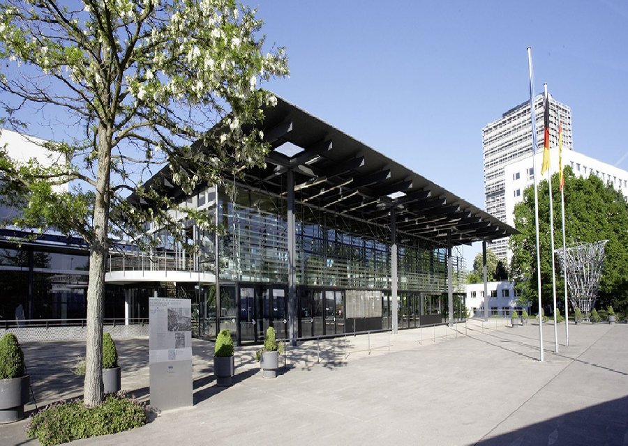 Nach jahrzehntelanger Diskussion entschied der Deutsche Bundestag im Jahr 1986 den 1949 gebauten Plenarsaal abzureissen und an gleicher Stelle einen modernen Neubau zu errichten. Während der Bauphase (1986 - 1992) für 120 Millionen Mark teure Parlamentsgebäude tagte der Deutsche Bundestag ganze sechs Jahre im benachbarten ehemaligen Wasserwerk. Nach der Entscheidung, den Regierungssitz nach Berlin zu verlegen, fand die letzte Sitzung mit der Vereidigung des Bundespräsidenten Johannes Rau am 1. Juli 1999 in Bonn statt. Heute ist der Plenarsaal Teil des World Conference Center Bonn (WCCB). |